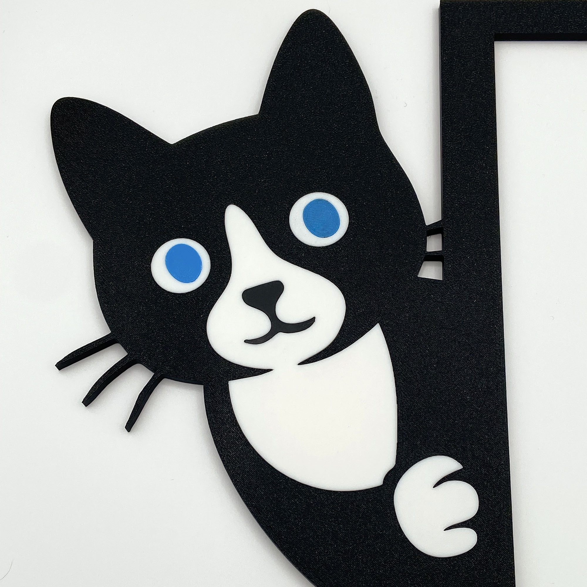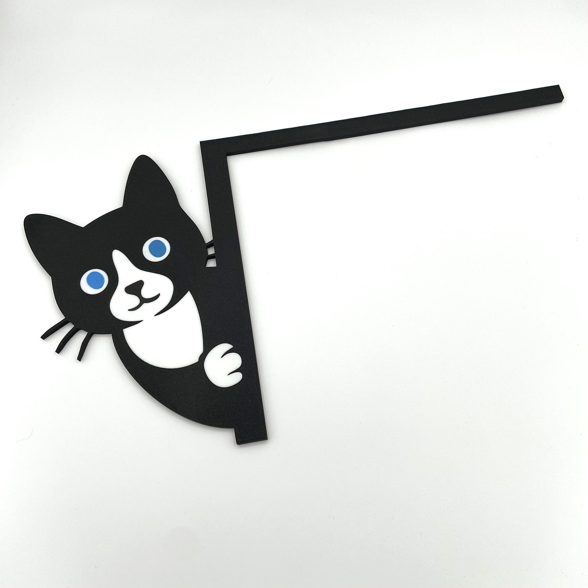 The Purr-fect Corner Companion Give your doorways, window frames, or mirrors a whimsical makeover with our Peeking Black and White Cat. This 3D-printed decoration is the ultimate “hidden gem” for your home decor, bringing a sense of fun to those empty corners.