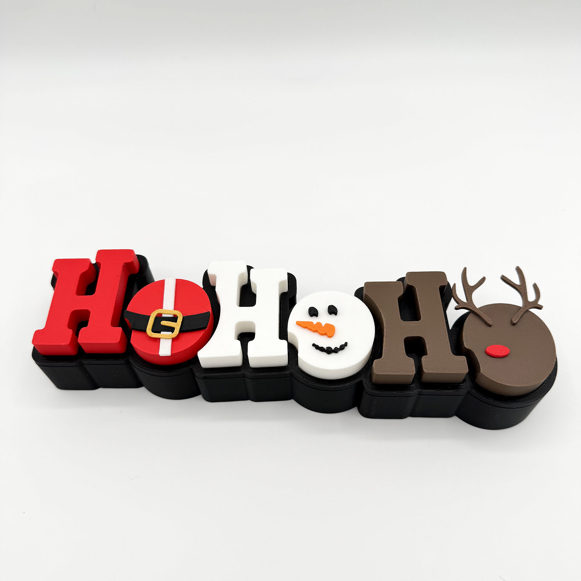 The most whimsical ornament on the tree! This unique sign spells out “Ho Ho Ho” using a Snowman, Santa, and Reindeer heads! A hilarious, clever, and festive conversation starter.