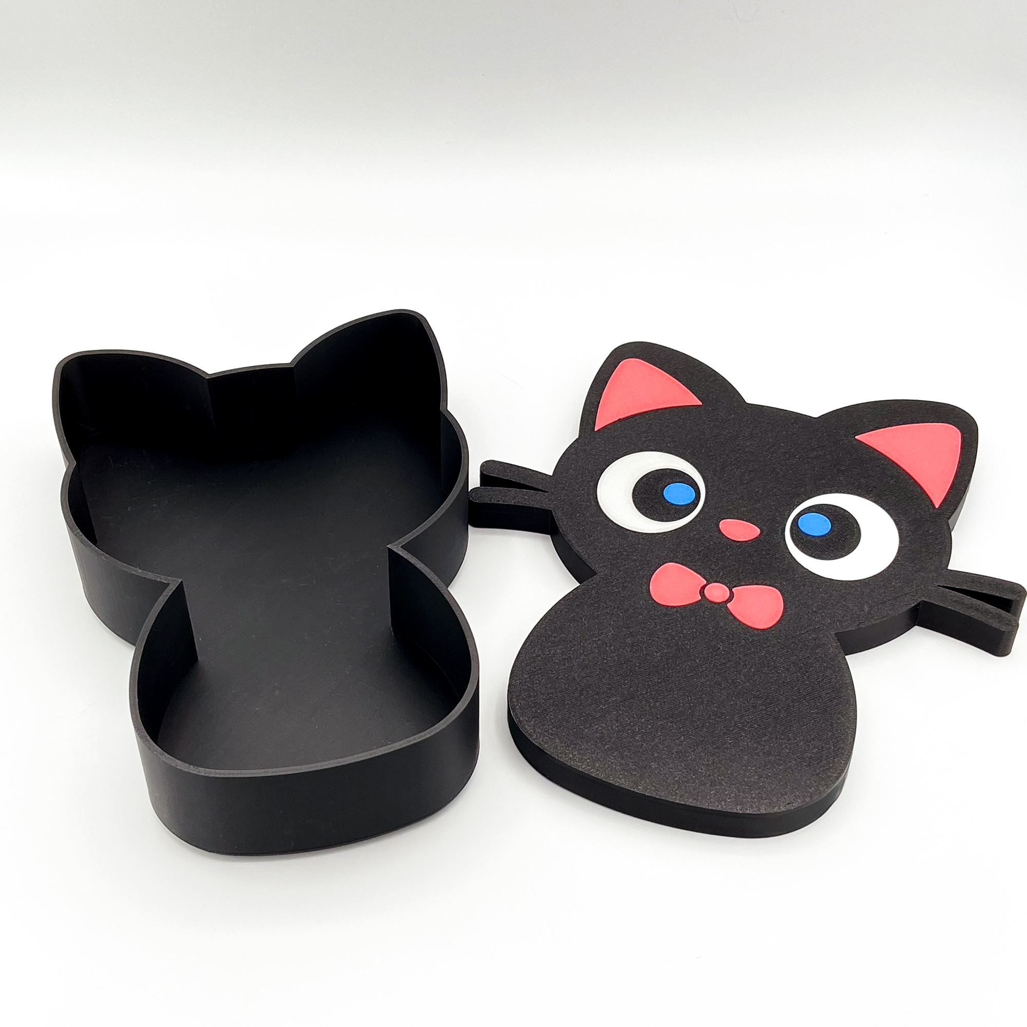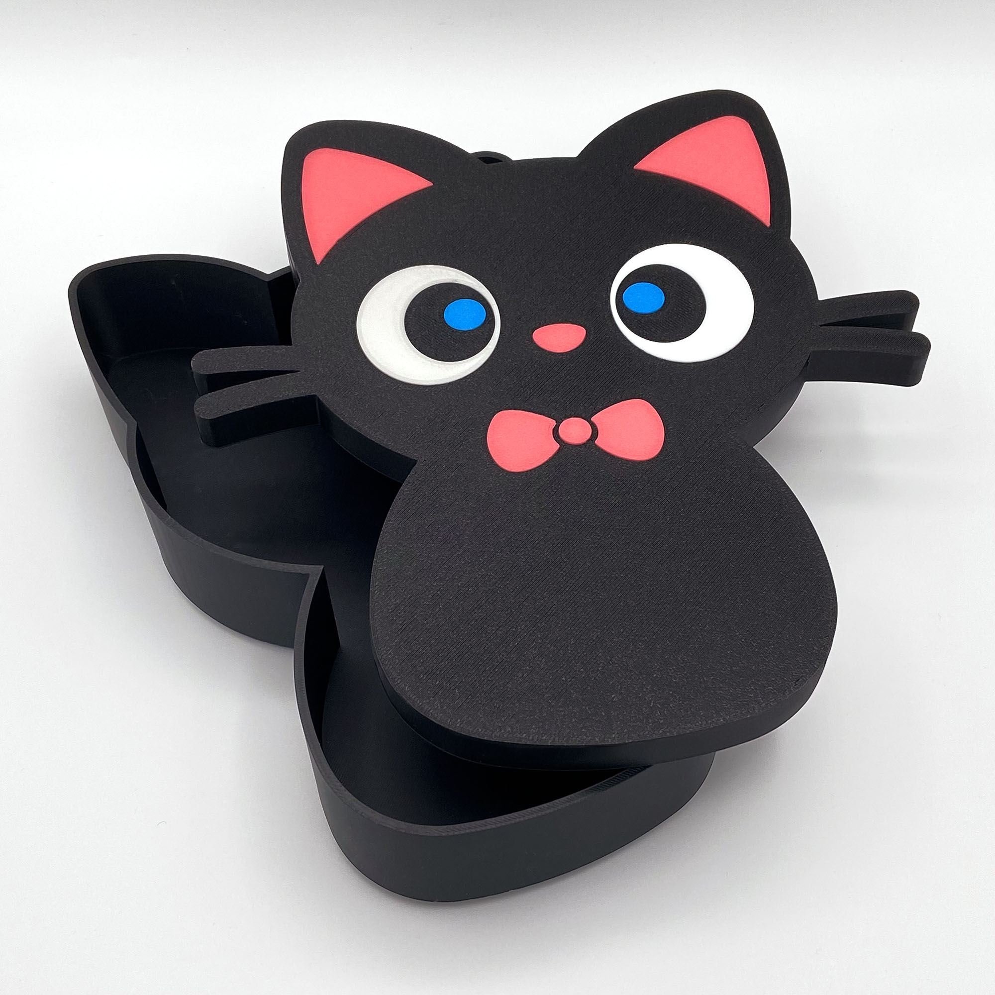 This adorable Black Cat Box isn’t just a decoration; it’s a secret keeper for your favorite little treasures. Designed with big, captivating blue eyes and a charming red bow tie, this 3D-printed storage box is the purr-fect blend of cute and functional.