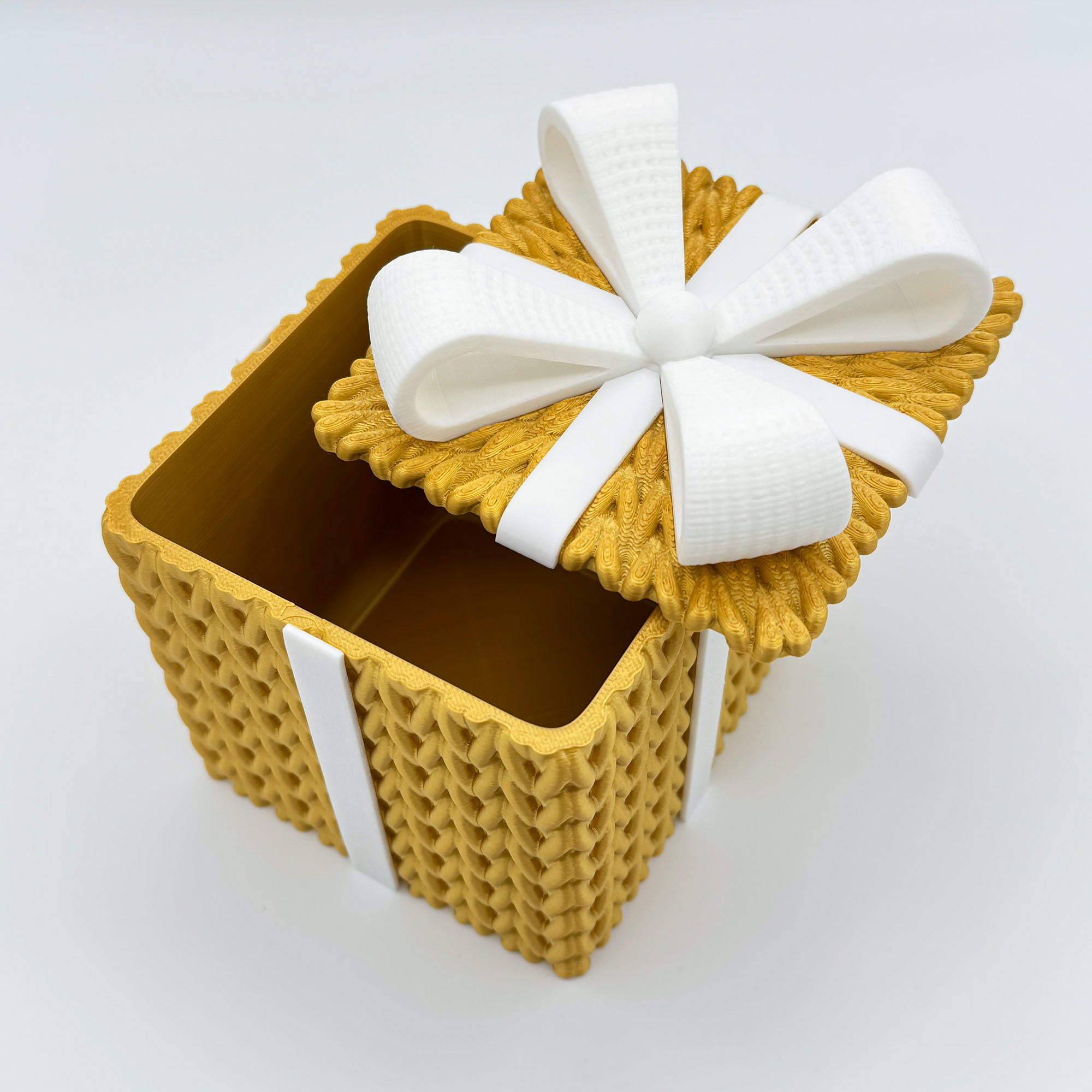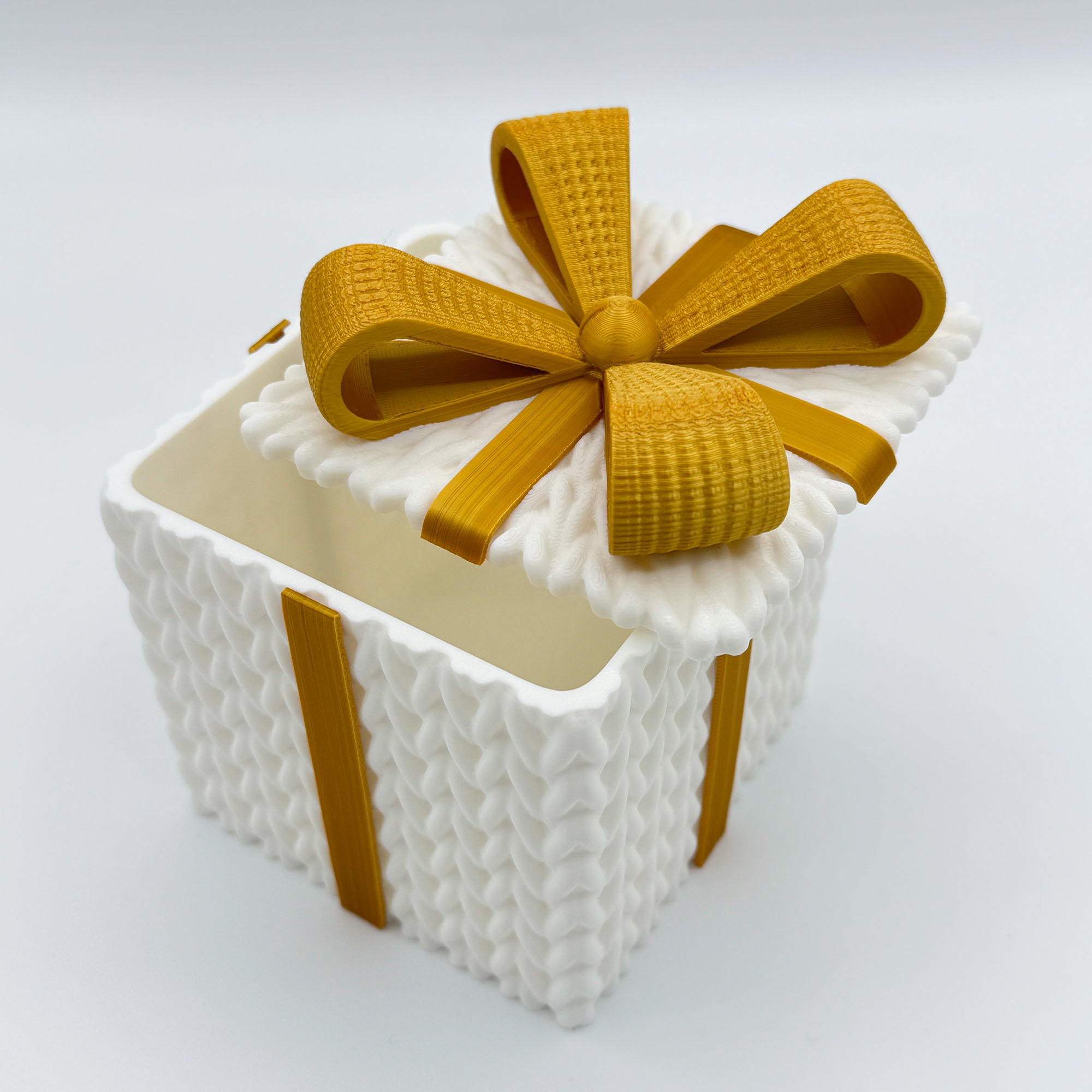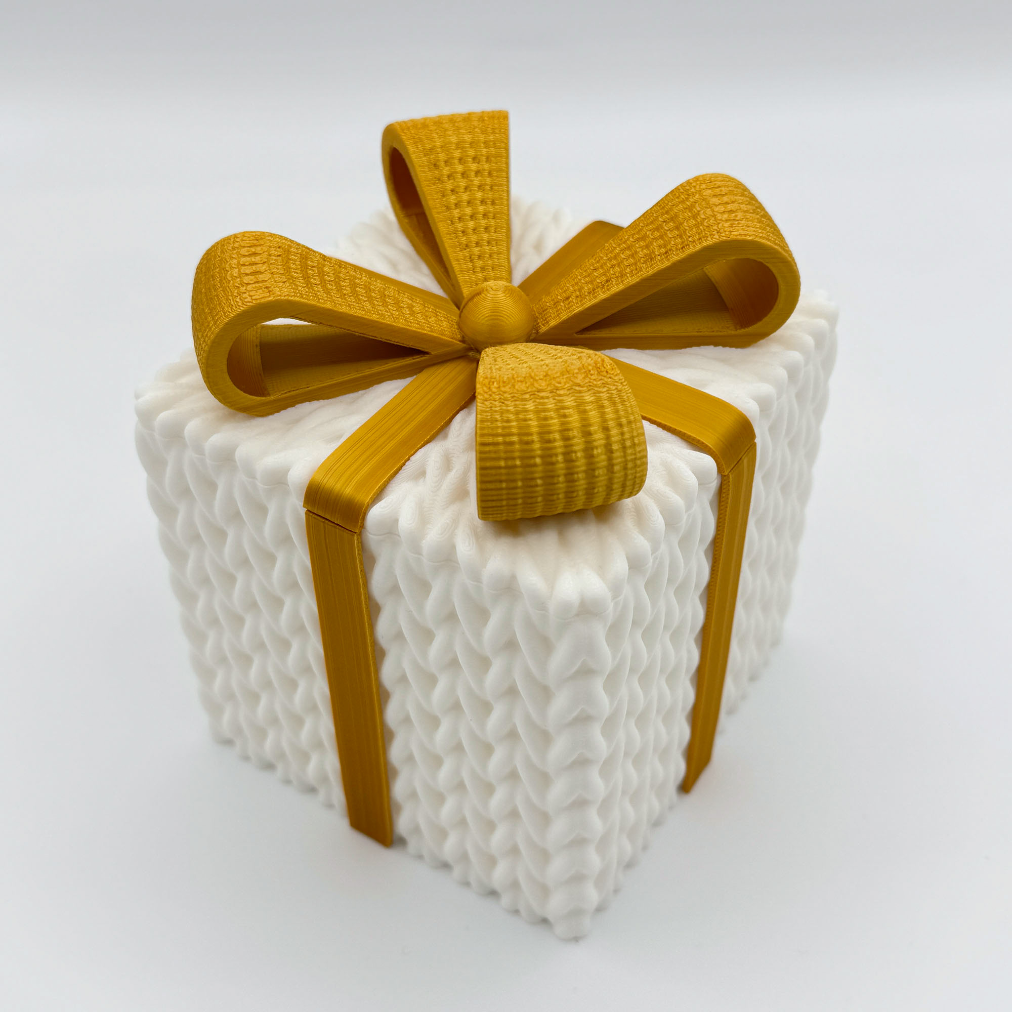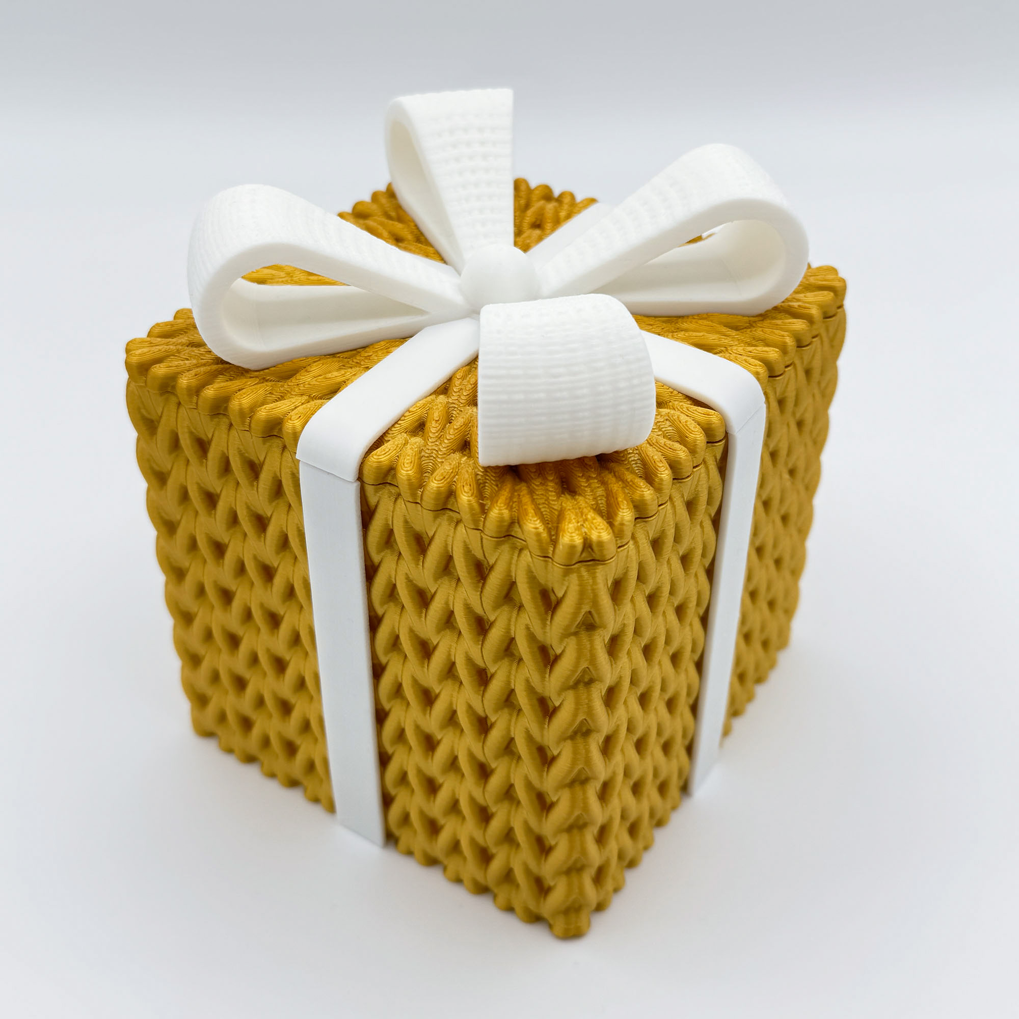 Give your gifts the warmth of a hand-knit sweater. Elevate your gift-giving this season with a box that is as delightful as the treasure inside. Our Knitted-Style Gift Box combines the nostalgic charm of a winter sweater with the durability of modern 3D printing.
